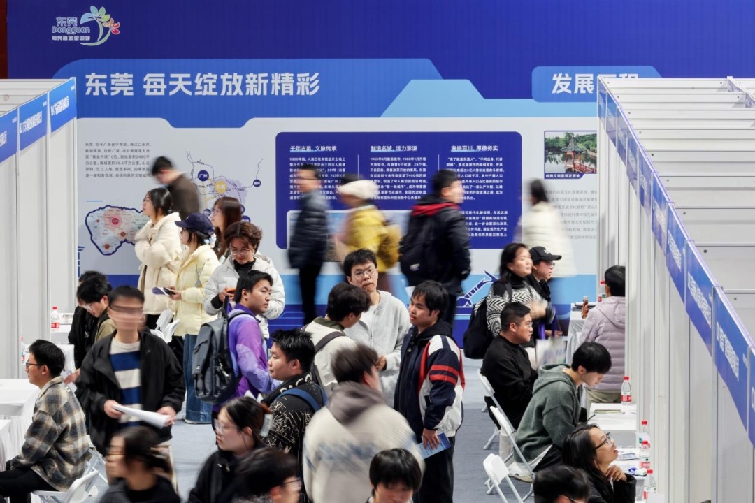 不同于传统招聘会,本次活动精心打造了一场名为“乐业青春嘉年华”的互动盛宴。承办活动的广东东莞、韶关两市,设置城市品牌特展区,成为学子们争相体验的热门区域。
