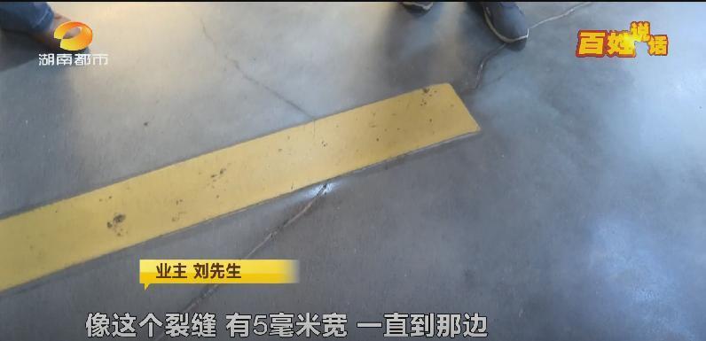 业主告诉记者,长沙·中交城小区在去年4月交付,在墙面的裂缝出现之前,地下车库的地面已经出现了大大小小多处裂缝。